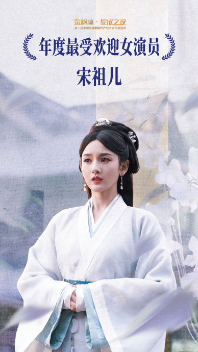 盛典现场巧妙设计了角色关联环节。红毯采访中,主持人邀请宋祖儿“跨越时空对小乔说一句话”,她当即以剧中结语回应:“谢同路者倾情相伴,望诸位往后余生平安顺遂”。这句台词承载着小乔对百姓的祝福,亦是乱世中人性光辉的注脚。通过复刻角色语言,宋祖儿将颁奖礼转化为剧中情感的延续——既呼应《折腰》“以爱破宿命”的主题内核,亦强化了观众对作品的集体记忆。