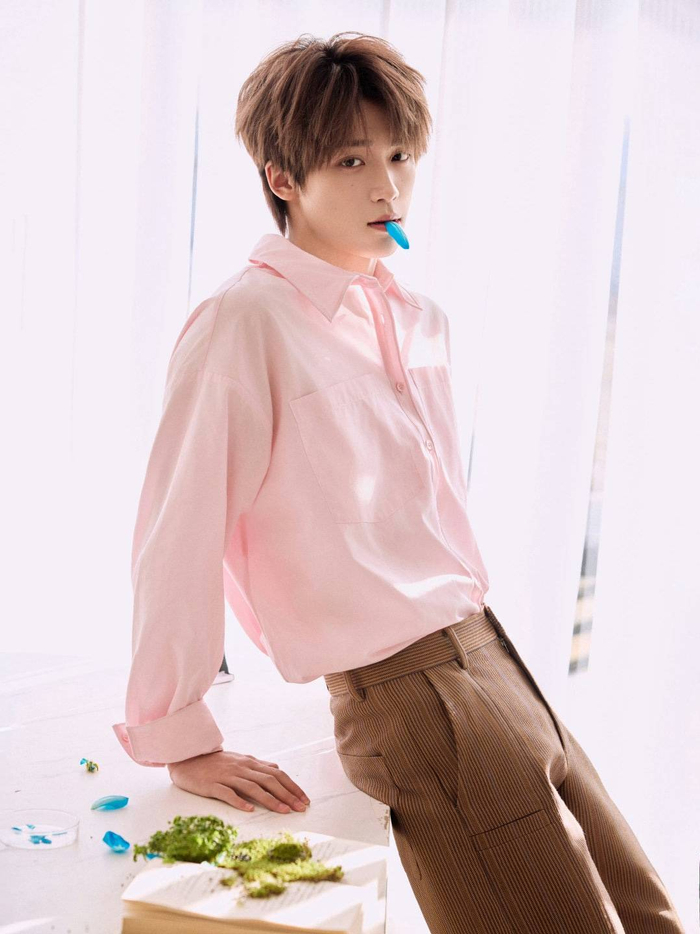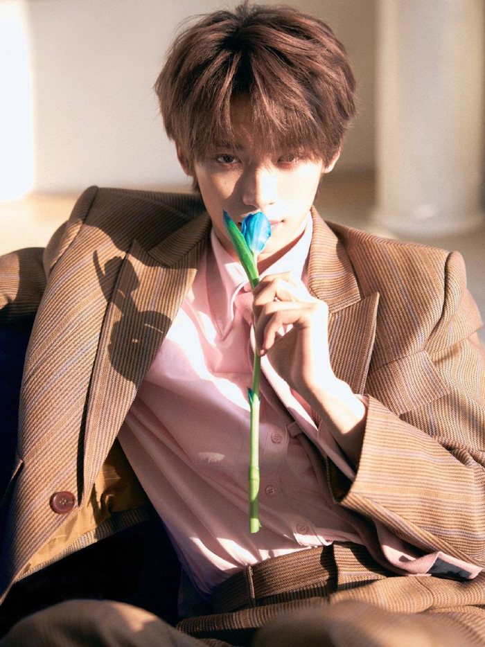 2026年情人节当天,歌手梓渝以一组充满巧思的写真大片,为粉丝送上了一份特别的节日礼物,迅速引发全网热议。照片中,他身穿温柔的粉色垂感衬衫,搭配棕色细条纹西装,手中捧着一束醒目的蓝色郁金香与蓝玫瑰。这组以“粉色与蓝色撞色”为核心的造型,不仅营造出浪漫与先锋美学交织的视觉风格,更将情人节的甜蜜氛围拉满。