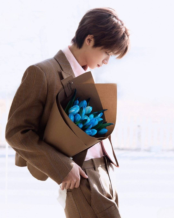 随着写真释出,粉丝很快解读出其中蕴含的深层含义,将事件推向高潮。原来,梓渝手中的蓝色花卉并非随意搭配,而是精准呼应了粉丝群体“YUNI”的官方应援色“星渝色”。蓝色郁金香在花语中象征着“独一无二的爱”与“无尽思念”,蓝玫瑰代表着“至死不渝的忠诚”。