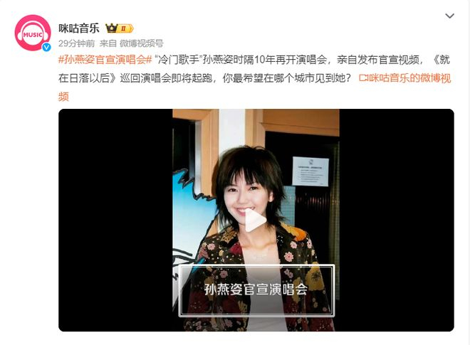 刚刚,“冷门歌手”孙燕姿官宣演唱会!上次演唱会距今已近10年