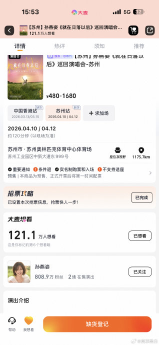 开票即湮灭:2月11日公售启动后,香港站门票以“火速售罄”告终。大麦平台数据显示,苏州站开票前预约人数突破115万,香港场开售前27.8万“想看”瞬间清零,系统崩溃成为常态。歌迷自嘲“参与百万级项目失败”,有人为抢票跨国报警追讨黄牛损失。