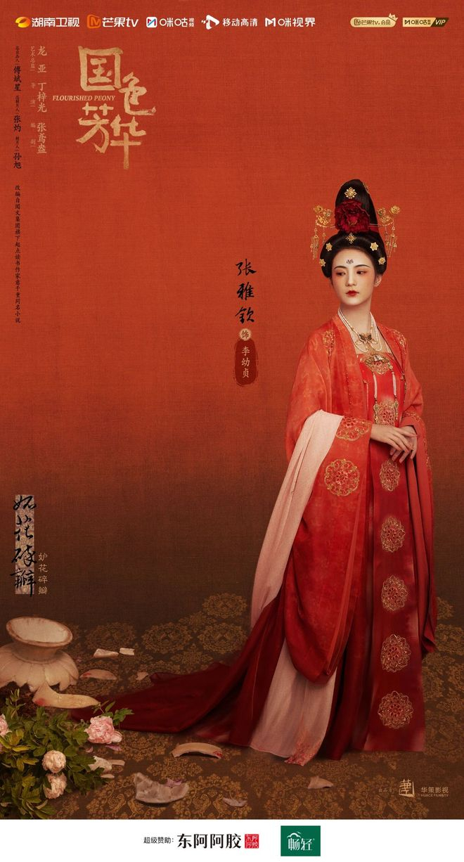 聚焦盛唐美学,本次首发的单人海报以朱红色为基底、场景多元,极具视觉冲击力。海报主题为“依花辨心”,或含苞待放或肆意盛放的牡丹串起故事主线,通过构图、服饰、妆容等多方面的精妙设计,细腻入微地勾勒出不同的人物身份,暗示了主角跌宕起伏激昂励志的人生故事。