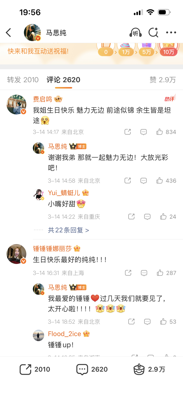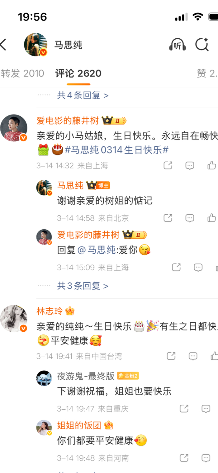 生日当天,林志玲、锤娜丽莎、费启鸣、饶雪漫等好友送上祝福,粉丝与工作室也纷纷表达心意。