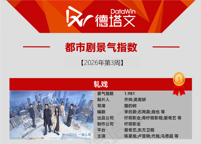 而正在热播的《轧戏》,则成为其表演特质的集中爆发点。“剧本杀+现实”的差异化设定打造的冬日浪漫盛宴,该剧开播后德塔文景气指数攀升较为迅速,位列德塔文都市剧景气指数周榜冠军,爱奇艺站内热度目前已达8677,在当前剧集市场中表现十分突出。