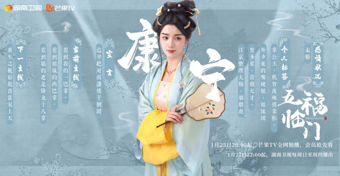 不管是《五福临门》中守护家族产业、主张“折梅为聘”自主婚恋观的郦家三娘康宁。