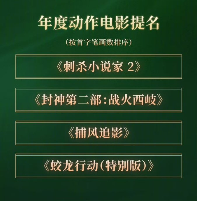 本届“年度动作电影男演员”提名仅设三席,含金量极高:
