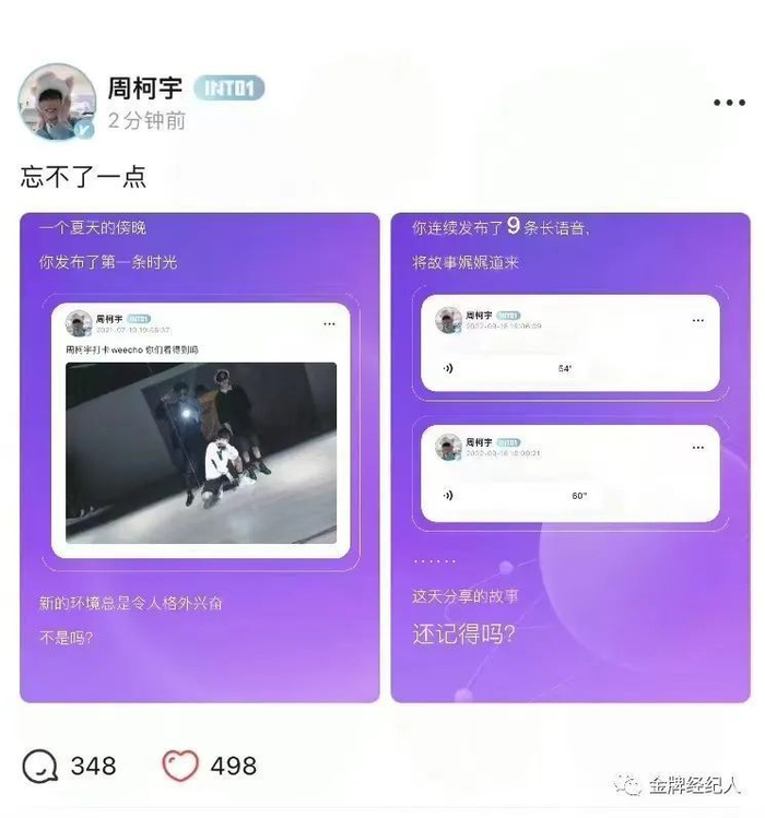 这已经不是哇唧唧哇第一次推出粉丝CLUB了,之前的限定组合R1SE和硬糖少女303 都曾经有过专属会员。粉丝成为会员之后还能看到平台专属物料,这里相比于其他平台,就像一个成员与粉丝分享生活和想法的隐秘的小空间,虽然还达不到韩国偶像与粉丝互动的“泡泡”的即时互动水平,但也较为具有参与感。