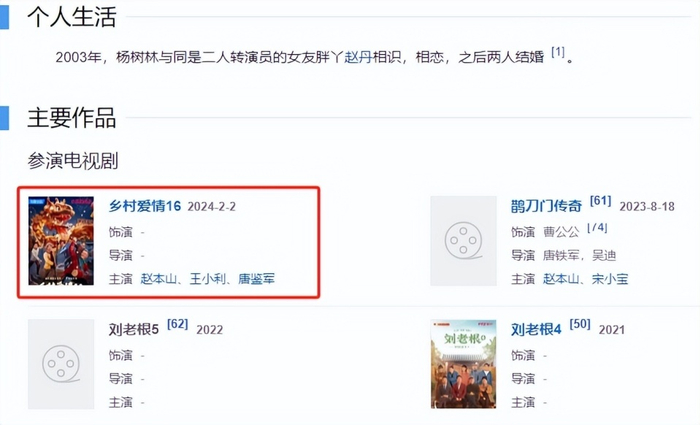 看到官方发了杨树林的视频进行宣传,笔者专门通过百科资料查看了一番,确定“杨光”将会在《乡村爱情16》中回归。