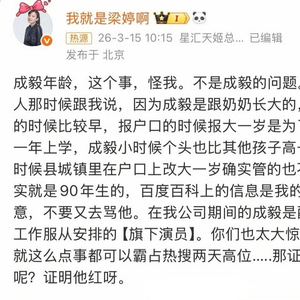 #梁婷 成毅年龄这个事怪我# 成毅前经纪人梁婷回应成毅改年龄的事,这…
