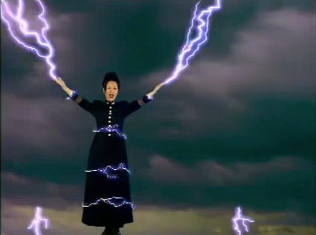 在唱到“借我借我一双慧眼吧”时,主要以雷电效果表现。这两道雷现在看起来很“雷”,但在当年的人看来,是最新的特效技术。那英之前在节目中爆料,当时3000块一道雷,由于拍摄经费不够,她自己掏了6000块买了两道。