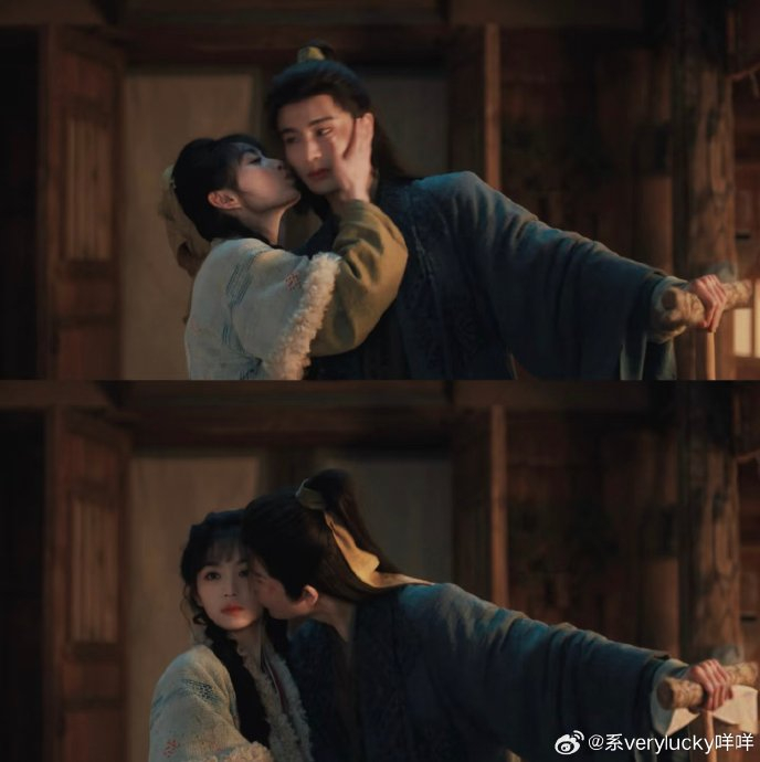 22cm身高差(张凌赫190cm/田曦薇168cm)催生诸多自然互动:张凌赫弯腰配合田曦薇整理碎发、自习室场景中低头凝视时下颌线与田曦薇梨涡同框、背后抱猜词游戏时下颌轻抵她发顶等,体型差强化了守护感。