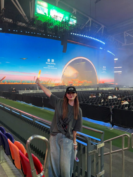 - 力量系摇滚金曲:《绿光》《第一天》的电子节拍点燃全场,重庆奥体观众随《第一天》蹦跳高歌“爱是腾空的魔幻”,将体育馆化作青春迪厅。