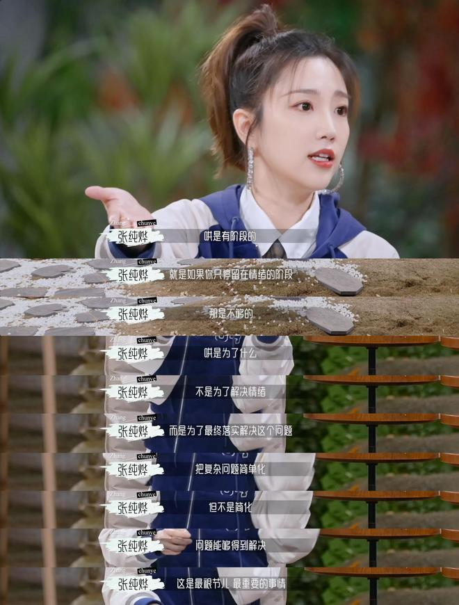 观察室讨论的观点,也变成了情侣之间现实的争吵与哄人。这种强烈的反差即是张纯烨个人从恋综新人向“恋综研究生”的转变,也是节目想要表达的关键所在。