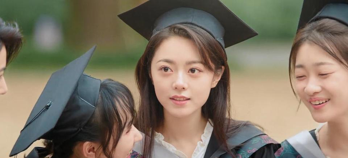 然后镜头再转向女主这边,彼时的聂曦光是一个活泼开朗、元气十足的明媚大学生,长发飘飘,眼神清亮。她家境优渥但一直十分低调,商学院才子庄序的出现,更是照亮了她青春岁月。