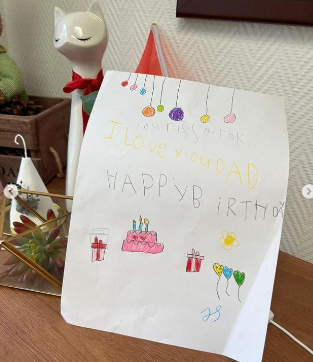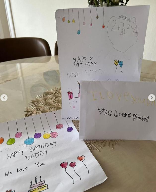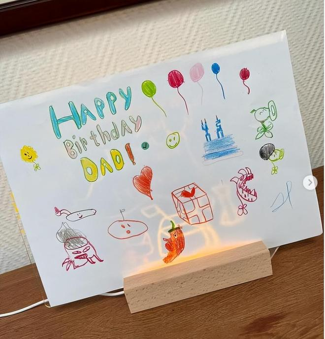 不过这一次虽然老婆不在身边正巧又遇到台风,在家中的三个孩子陪老爸一起庆祝生日,并且三个小朋友分别绘画了小卡片给老父亲庆祝生日。