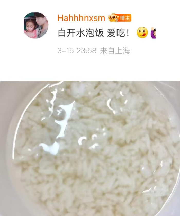 鞠婧祎小号发微博说“白开水泡饭 爱吃”,美女的口味好特别
