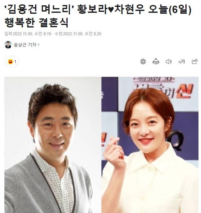 11月6日,女演员黄宝拉与金英勋正式结婚,两人在首尔某地举行了秘密婚礼,只邀请家人和熟人非公开举行。