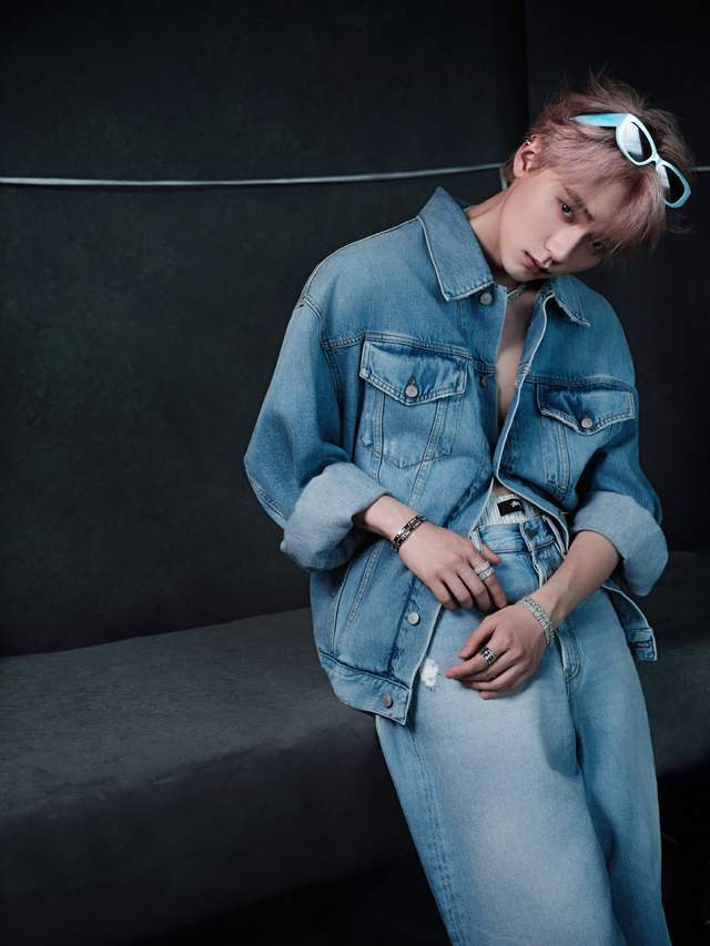 虽说不同于某些时尚品牌需要特地刻画肌肉,但一身牛仔套装的周翊然,为了对外展示珠宝,只系了一颗纽扣。