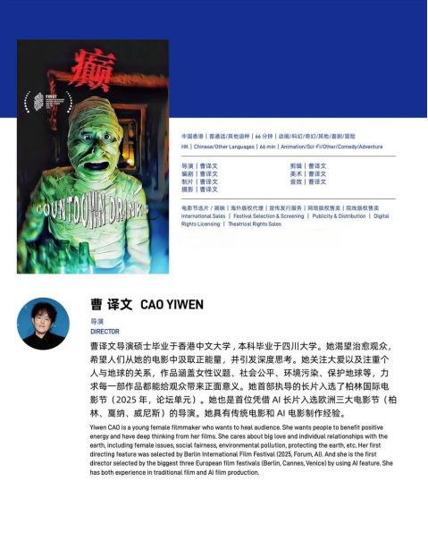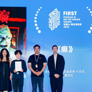 「拍我AI·看见想象奖」的首位得主——导演曹译文,用AI完成了长片作品《癫》,并入围了本届年度FIRST产业放映单元。她不仅是全球范围内首位以AI长片入选欧洲三大电影节(柏林、戛纳、威尼斯)的导演,也在不到一年时间内,凭借《福岛之后》《看不见的斗争》《然后呢》等三部AI作品登上多个国际舞台。