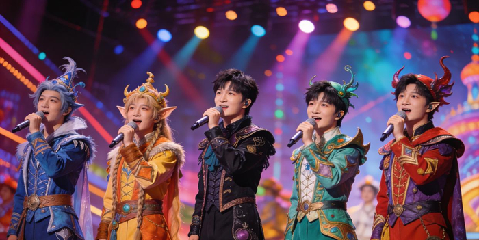 《达拉崩吧》里,他把摇滚、电子、古风、童声、低沉男声装进同一首歌,声线切换丝滑到像开了变声器,却仍保留辨识度的“周深式颗粒”。