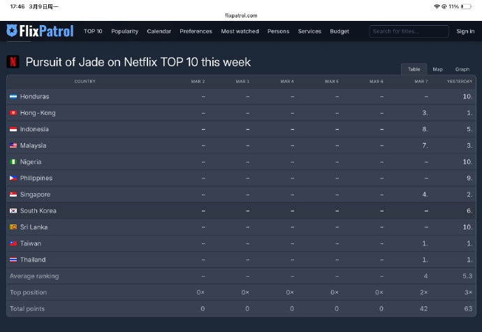 - 韩国破圈创纪录:作为Netflix全球竞争最激烈的市场,韩国榜单常年被本土剧垄断,《逐玉》以非英语剧身份冲至总榜第二,打破华语剧在韩历史最高排名,首周观看人次逼近热门韩剧。