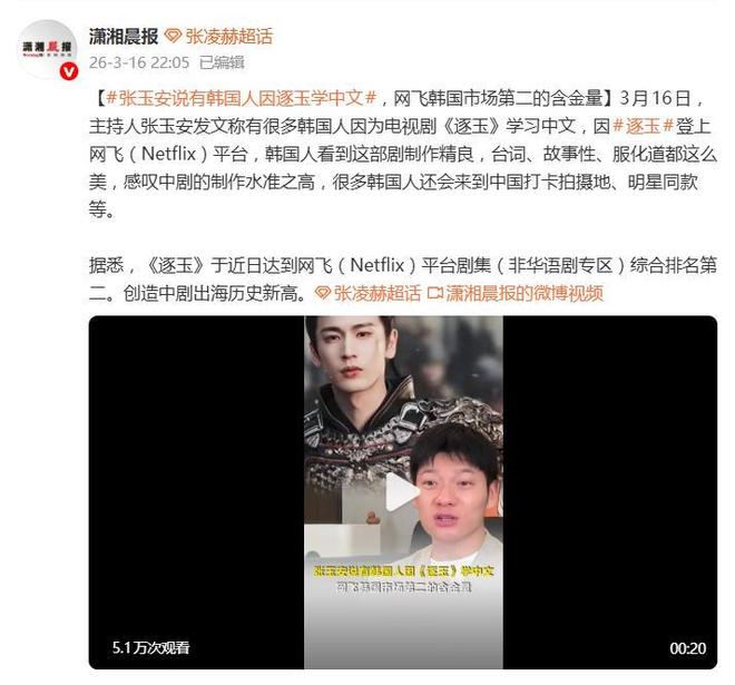 热度不止停留在屏幕上。知名主持人张玉安近日就发文透露,因为《逐玉》制作太精良,从台词、故事到服化道都美得让人惊叹,很多韩国人竟然因此开始学习中文,甚至专门跑来中国打卡剧中的拍摄地和明星同款。一部剧,愣是成了“文化输出+语言教学”的双料教材。