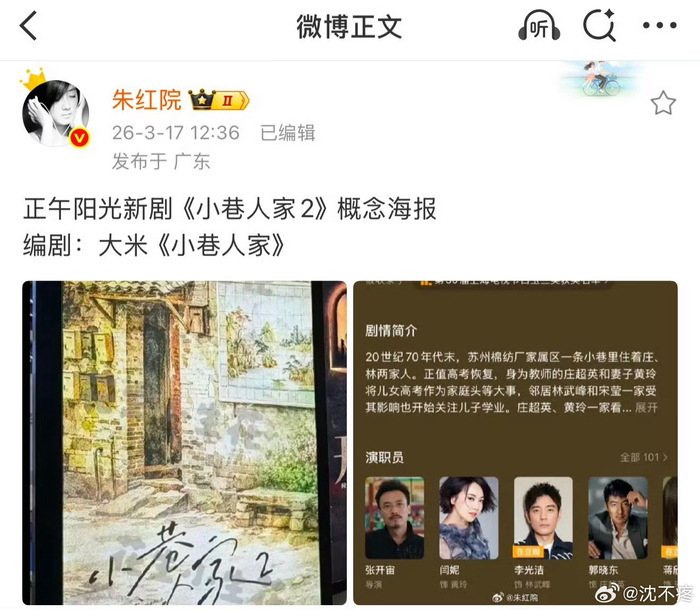《小巷人家2》官宣启动,原班人马回归