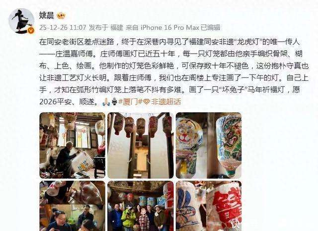 12月26日,演员姚晨在社交平台上分享了一组温馨的亲子时光照片,画面中,她与儿女小土豆和小茉莉一同走进了非物质文化遗产——龙虎灯的制作现场,亲身体验传统手工艺的魅力。这组照片一经发布,就引发了网友们的热烈关注,大家纷纷表示:这才是最有意义的亲子时光!