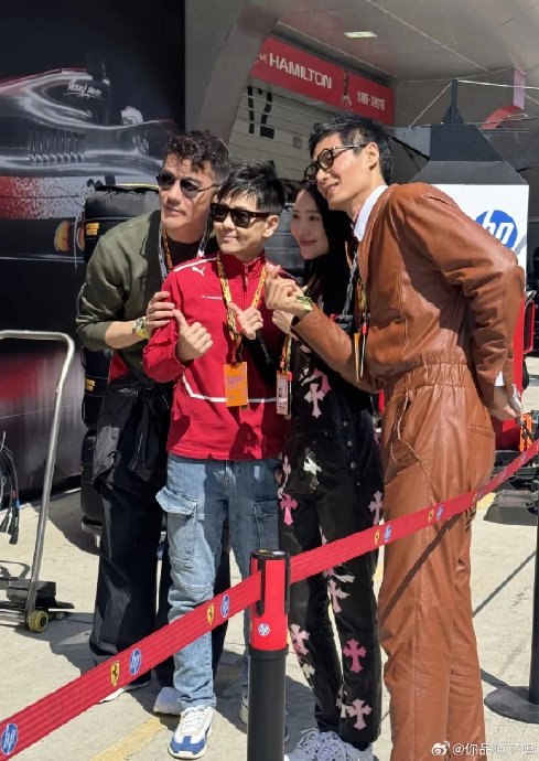 专业与温情交织: 当林志颖与中国车手周冠宇热聊赛车发展时,胡兵在一旁微笑旁听,展现对专业领域的尊重。林志颖妻子陈若仪低调随行,用手机记录丈夫与胡兵等人的互动场景,为星光时刻增添温情。