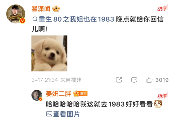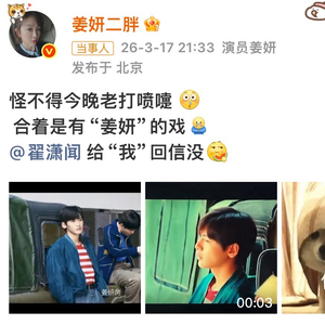 姜妍追剧发现出演《你好1983》,翟潇闻回应将回信 一直芒着嗑CP 优质娱乐领域创作者 03.1812:07 关注 姜妍也在看你好1983姜妍:追剧发现自己在《你好1983》!翟潇闻:收到!晚点给你回信📮中餐厅售后这不就来了吗!这对“姐狗”组合也太好磕啦