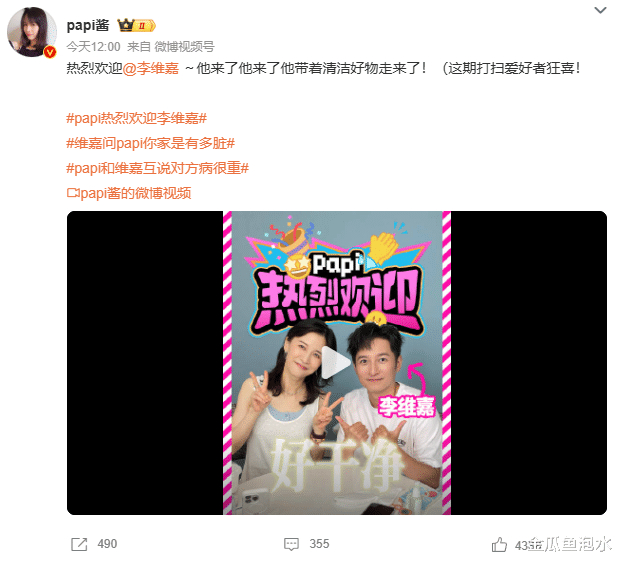 “洁癖狂魔”papi酱遇上“清洁怪咖”李维嘉:这场“病号”互怼,笑不活了!_互动_合作_官宣中
