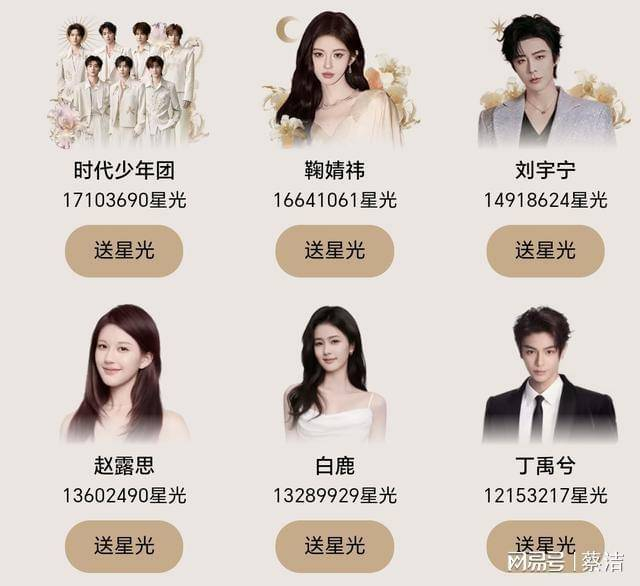 按照现在的趋势来看,鞠婧祎极有可能会超越时代少年团,成为榜单的新领军人物。毕竟她与时代少年团之间的星光值差距不大,鞠婧祎完全有机会登顶榜首!