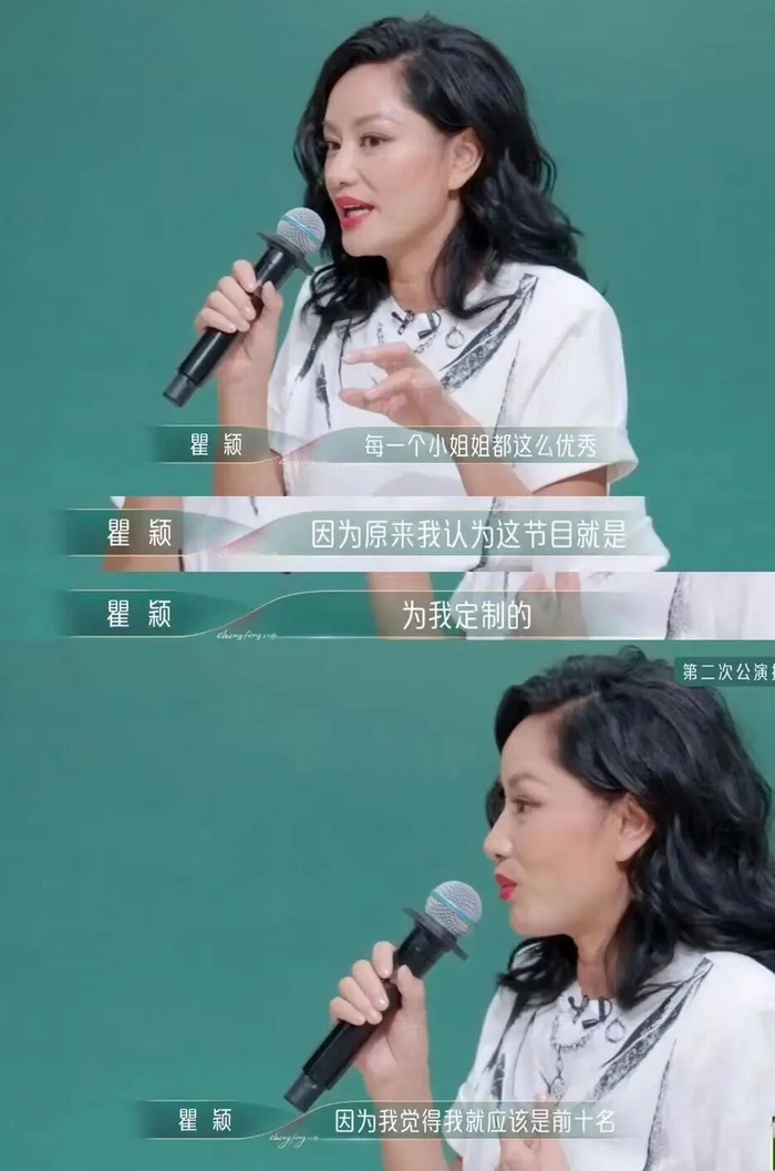 在拉票环节,瞿颖会大方直言:“我原来认为这节目就是为我定制的,我觉得我就应该是前十名。”