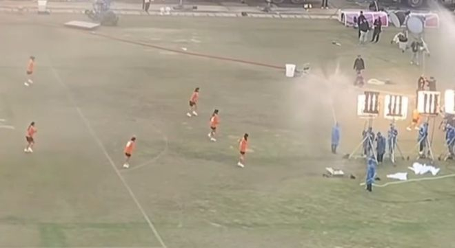 此前《女足》路透拍摄画面曝光,有特效动作场面,看上去像《少林足球》。