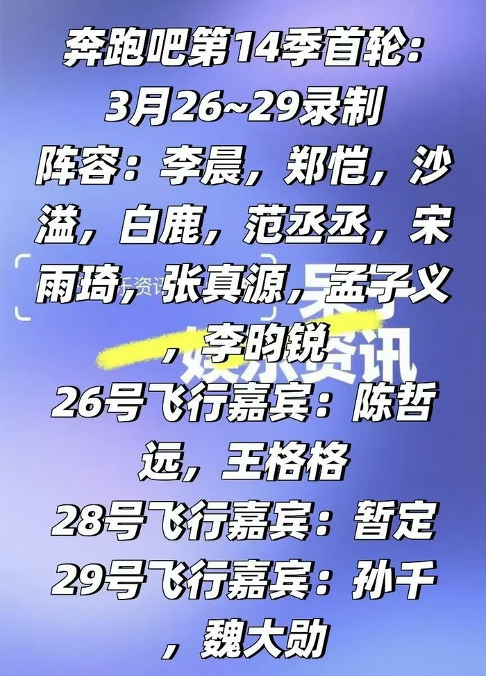 #奔跑吧14海口录制嘉宾# #奔跑吧14首轮录制嘉宾# 奔跑吧首轮嘉宾