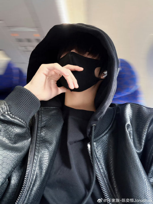 陈奕恒在#陈奕恒飞机上的自拍#话题下发布的照片,以全黑穿搭(All Black)和半遮脸口罩为核心视觉符号。黑色卫衣、鸭舌帽与冷色调机舱背景形成冷感氛围,但下垂的眼尾与自然蓬松的头发又透露出少年稚气,被粉丝精准概括为“酷奶双生”的矛盾气质。这种冷峻与柔软的碰撞迅速成为传播爆点——娱豆豆赞叹“随手一拍都是画报”,玟天再池分析其“清冷眼神与口罩下萌态形成视觉冲击”,而滚婆嬷嬷的“鼻血流整条街”则代表最直白的生理反应。