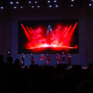 校园舞台巧妙放大团名"RED"的象征意义:红色灯光渲染热情主调,蓝色服装点缀冷冽质感。当《大展鸿图》的鼓点响起,成员们以抽象肢体语言演绎"宏图"意象,配合闪烁的校徽投影,将青年进取心与校园精神绑定,形成独有的情感共鸣。