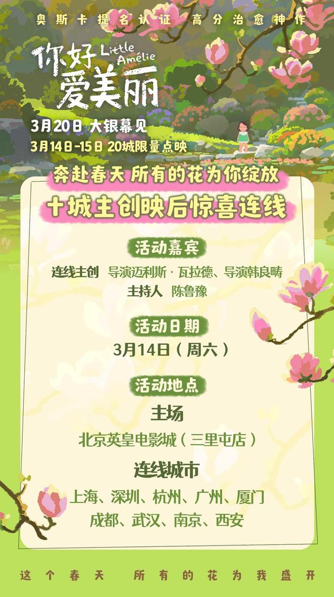 电影《你好,爱美丽》全国20城限量点映 主创连线共赴春日之约
