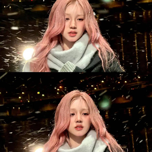 刷到宋雨琦那组粉发沾雪的照片时,我正裹着毯子窝在沙发里。屏幕上的她,粉色头发上落着星星点点的雪,抬眸望过来,甜净里带着冬日的朦胧。那一瞬间,我好像闻到了清冷的空气味道,也突然觉得,这姑娘把头发当成了自己的心情调色盘。