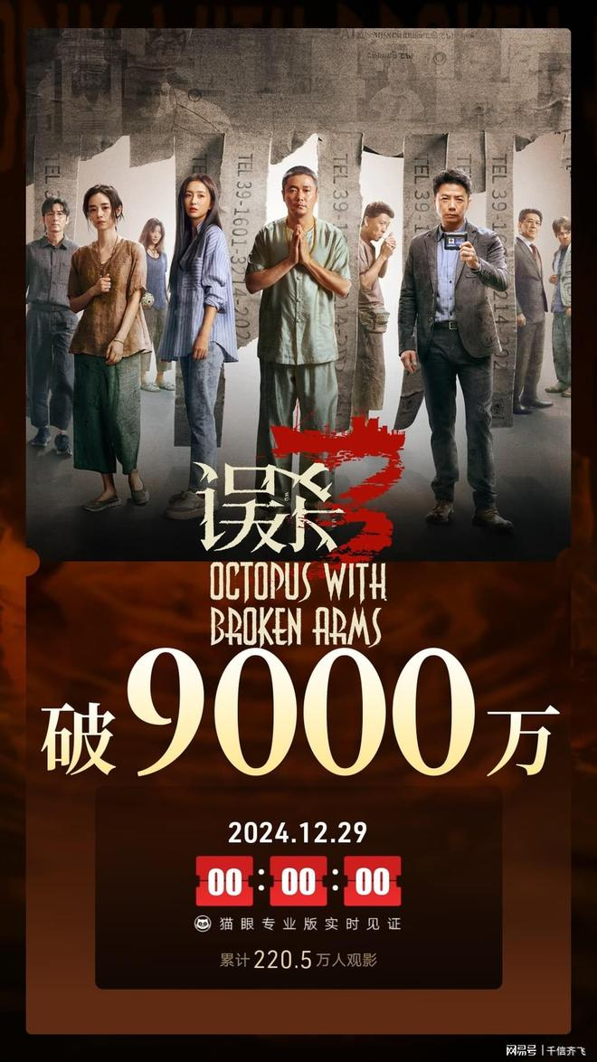 【影讯】《误杀3》是由陈思诚监制,甘剑宇执导,肖央、佟丽娅、段奕宏、刘雅瑟领衔主演,王龙正、冯兵、周楚濋、徐诣帆主演,高捷、尹子维特别出演,张榕容、卢慧敏友情出演的剧情悬疑犯罪电影,是《误杀》系列电影的第三部,该片侧重展示人性的复杂,讲述了富豪郑炳瑞邀请老师李慧萍为8岁女儿婷婷庆祝生日,其间婷婷被绑架。警官张景贤带队侦办绑架案,消息泄露,在绑匪威胁下,郑李二人只能甩掉警察自己营救婷婷。随着深入调查,所有真相逐渐揭开,陷入绝境的父亲和玩弄人心的绑匪展开了一场与虎谋皮的角力,潮水之下皆是暗涌的故事。影片于2024年12月28日(今天)上映,上映首日票房超过8600万人民币,截止发文时间票房突破9000万人民币,口碑爆棚微博大V推荐度高达98%,业内人士刘昊然、文咏珊、等纷纷力挺!