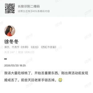 #徐冬冬把婚戒手链都丢了# 徐冬冬发文称把婚戒手链都丢了,网友齐呼太粗心,要不姐再找找呢