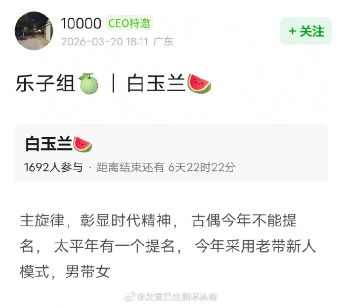 2026年3月,关于白玉兰奖将推行"老带新"评奖模式的消息在社交平台引发热议,网友爆料称本届最佳女主角奖项将倾斜于未获奖的新人演员,并需满足"主旋律题材+演技达标"的双重标准,这一传言随即触发公众对奖项专业性、公平性的集中质疑。