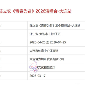 陈立农工作室于2026年3月21日正式官宣"青春为名"全球巡回演唱会新增四站:大连、中国澳门、马来西亚和一个待揭晓的惊喜城市,引发粉丝热烈期待。