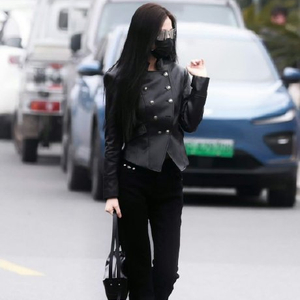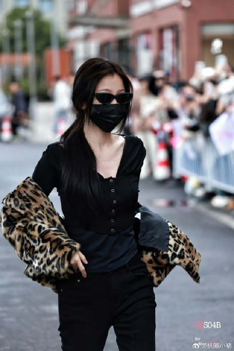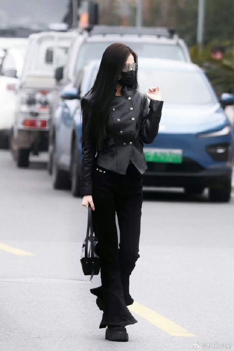 整体干练优雅,延续其"横店时装周"的穿搭标杆形象。
