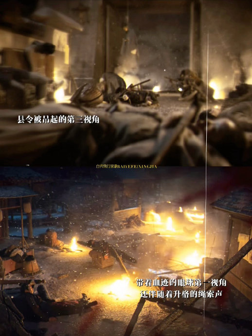 - 战损美学:谢征猪圈藏身时灰尘漫舞的微光镜头,被网友类比维米尔油画,同样手法复刻于配角战损场景,破碎感直击观众情绪痛点;