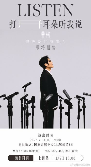 曹格2026年‘打开耳朵听我说’巡演还会去哪些城市?