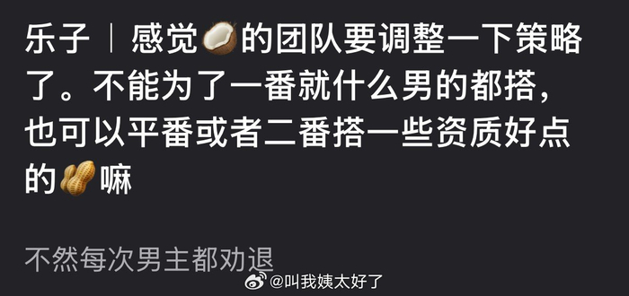 有网友说感觉周也的团队要调整一下策略了,不能为了一番就什么男的都搭,不然每次男主都劝退,大家怎么看?