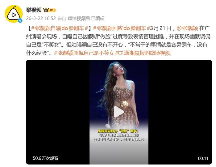 3月21日的广州演唱会,张靓颖一开口就扔了个“重磅炸弹”。她没按常理出牌聊音乐,反而主动揭了自己最近的“短”——正面回应了因表情僵硬引发的种种猜测,自曝这一切都源于假期“做脸”过度,正处于恢复期,还幽默地给自己封了个“不笑女”的称号。