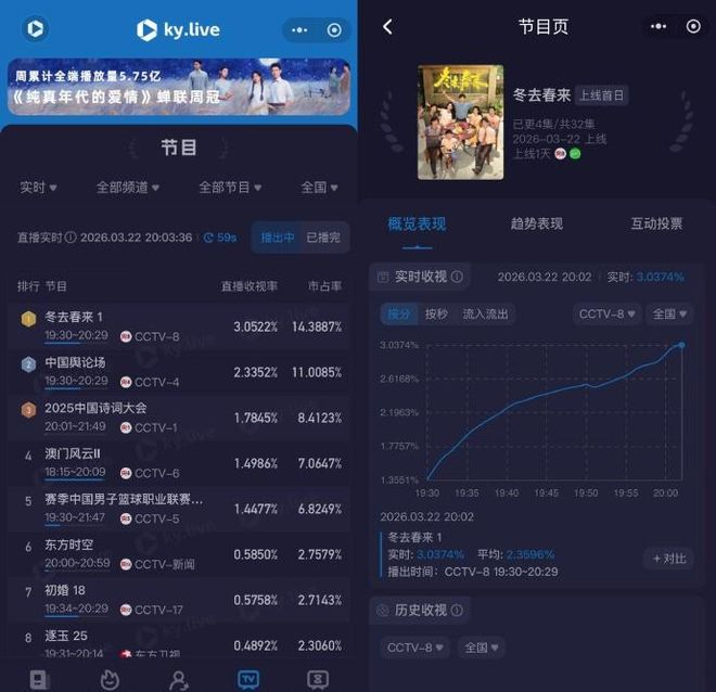 最近刷短视频没?白宇演的年代剧《冬去春来》刚在央视8套播了4集,直接炸了!酷云收视率半小时破3,全平台第一,连爱奇艺都给了5个广告位,这开局简直是开火箭啊。更绝的是,观众看完的评你猜这剧啥来头?居然是《南来北往》的原班人马!郑晓龙和李昂一起导,高满堂和李洲写剧本,白宇、章若楠这些年轻演员凑一块儿,质感直接拉满。背景是1994年到2018年的北京,讲的是“冬去春来”小旅馆里一群北漂的追梦故事——编剧徐胜利、备考歌舞团的庄庄、吹萨克斯的陶亮亮、画家曹野、群演郭宗宝,每个人都揣着梦想闯北京。