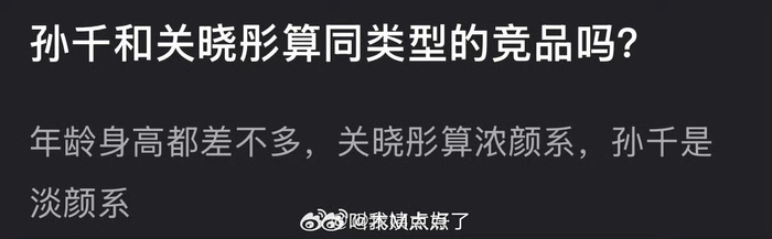 大家感觉孙千和关晓彤算同类型的竞品吗?年龄身高都差不多,一个浓颜一个淡颜